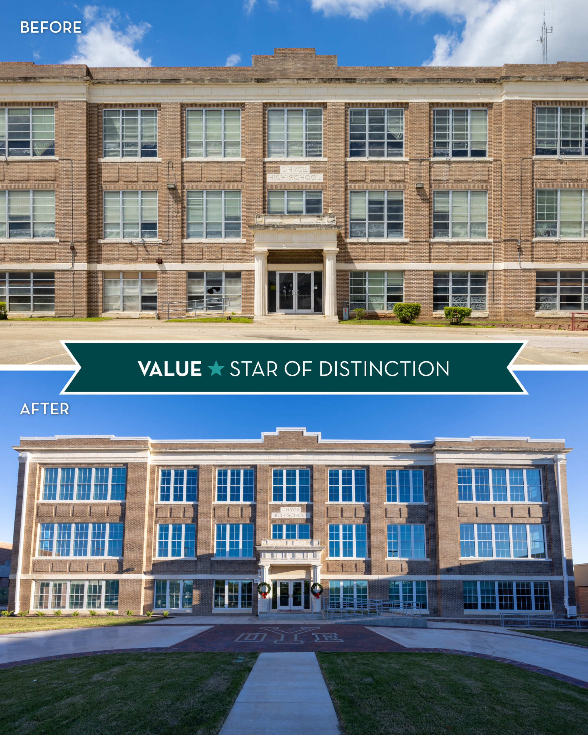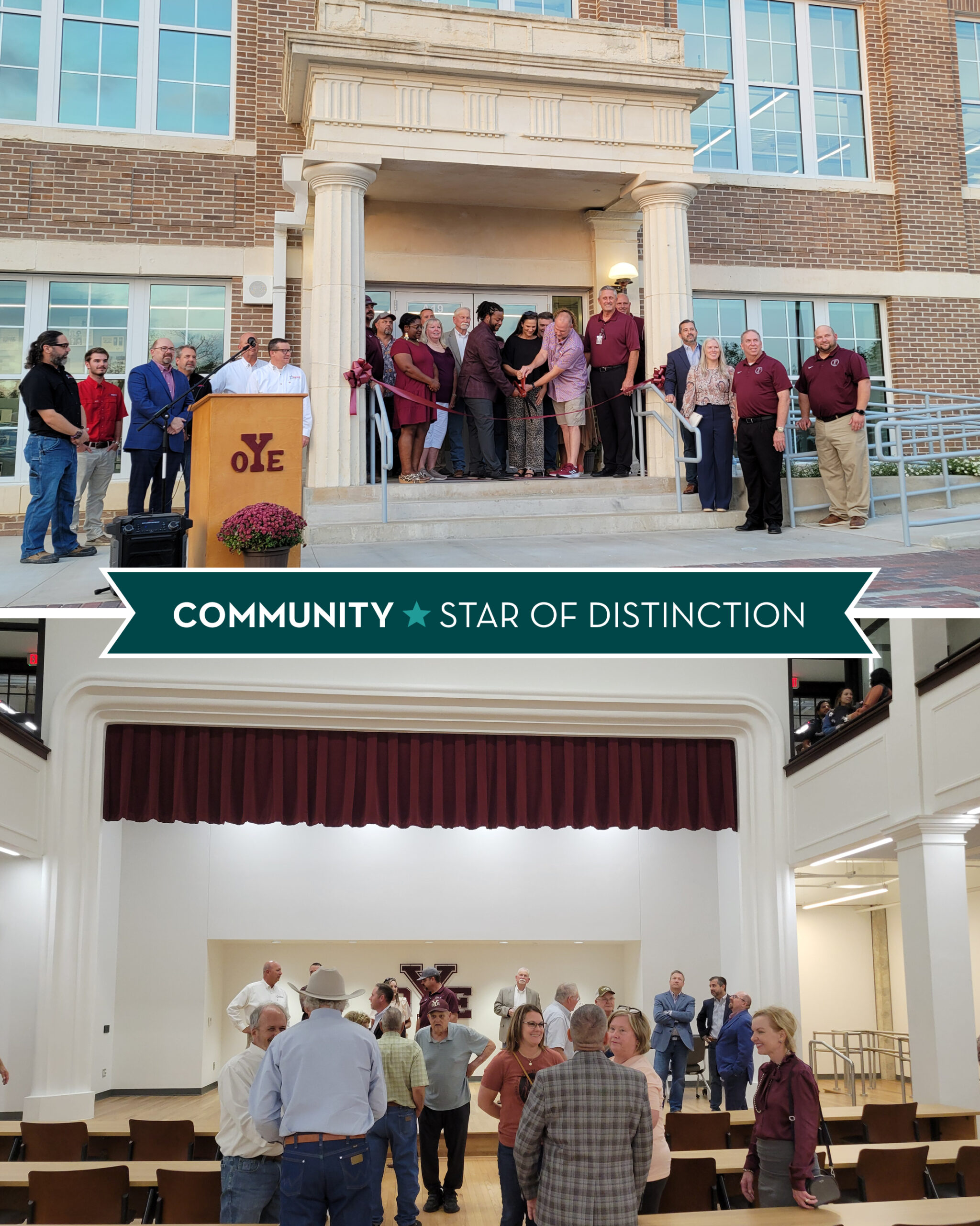 Two projects—Cameron ISD’s C.H. Yoe High School CTE Center and Gregory-Portland ISD’s Early Childhood Center—each earned 4 Stars of Distinction. Projects can receive Stars of Distinction in Community, Planning, Transformation, Design, Value, and Wellness.