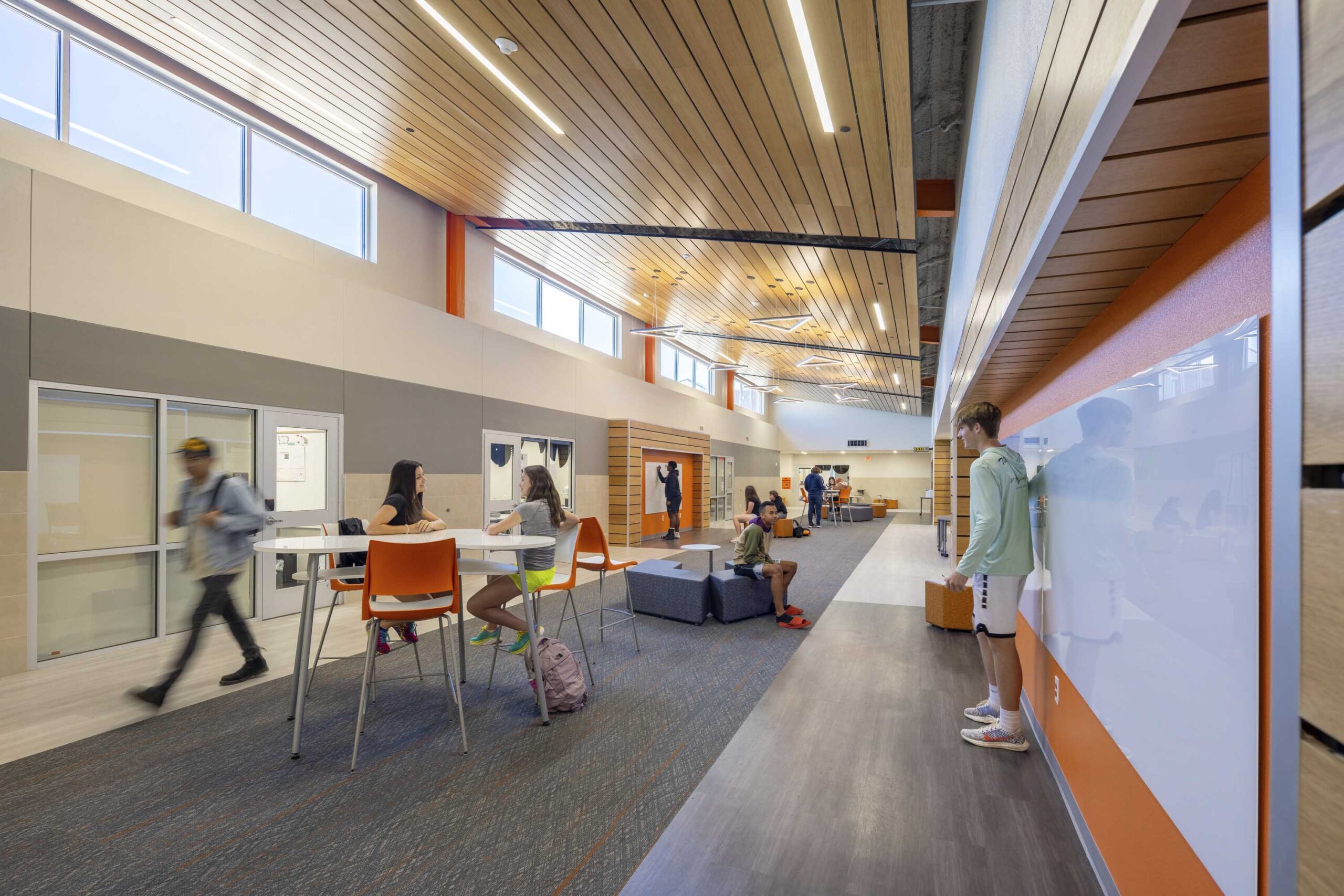 From a functional perspective, collaboration space, flex labs, wider corridors, and the activation of the library and den increased capacity and made every space available for learning, collaboration, and gathering.