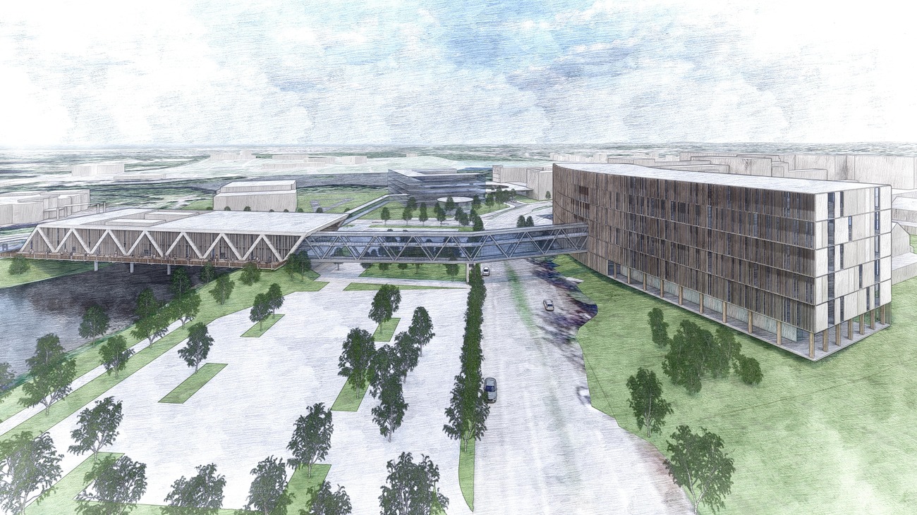 During the master planning, the design team tackled three major issues: the increasing demand for patient housing and long-term care, reducing campus transportation by consolidating outpatient and inpatient services, and enhancing clinical departments at the main hospital (ANMC).