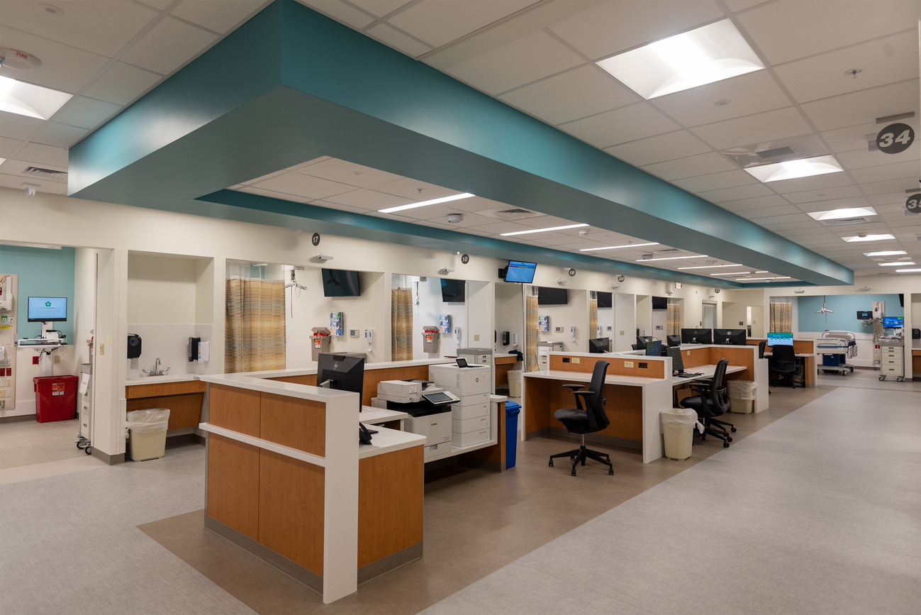 E4H was retained by ChristianaCare for the Surgical Admissions renovation project located on the second floor of the Christiana Hospital on their Newark, DE campus. The 14,056 square foot project area, adjacent to the existing surgical department, consists of 36 patient care stations including 34 patient bays and two airborne infection isolation patient rooms. The patient bays surround two open nurse stations and are separated into two non-sleeping patient care suites.