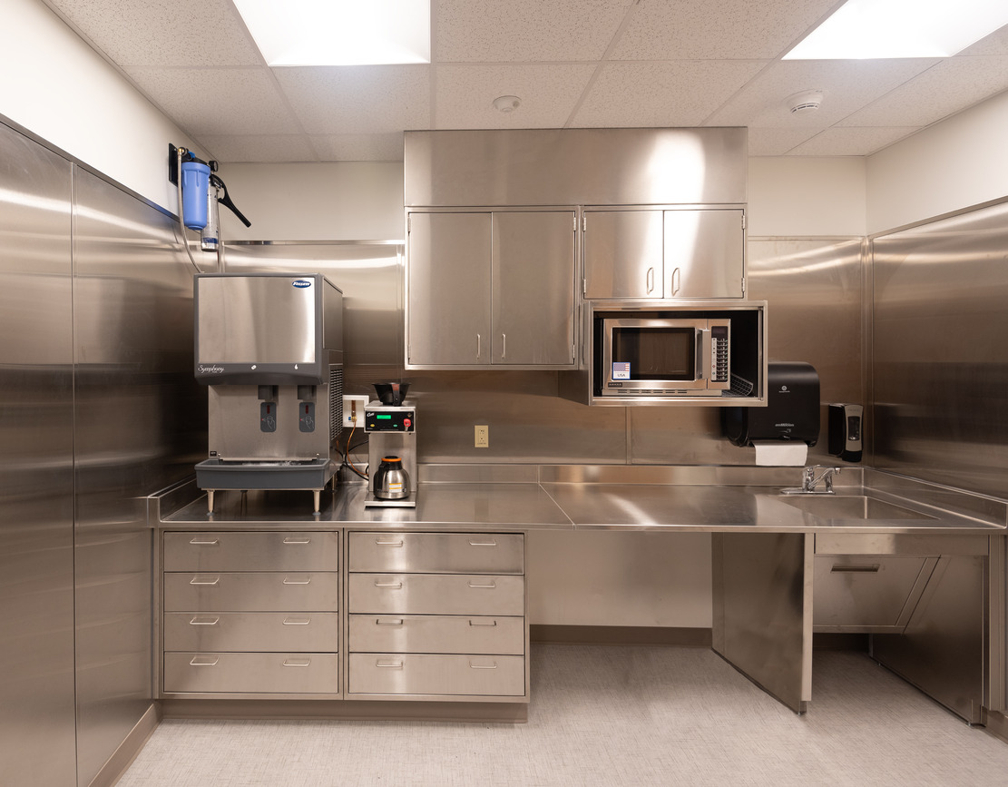 • A large equipment storage room with access from two separate circulation areas, and there is a Nourishment Room, a Staff Lounge, two shared offices, a single office and a Team Workroom.