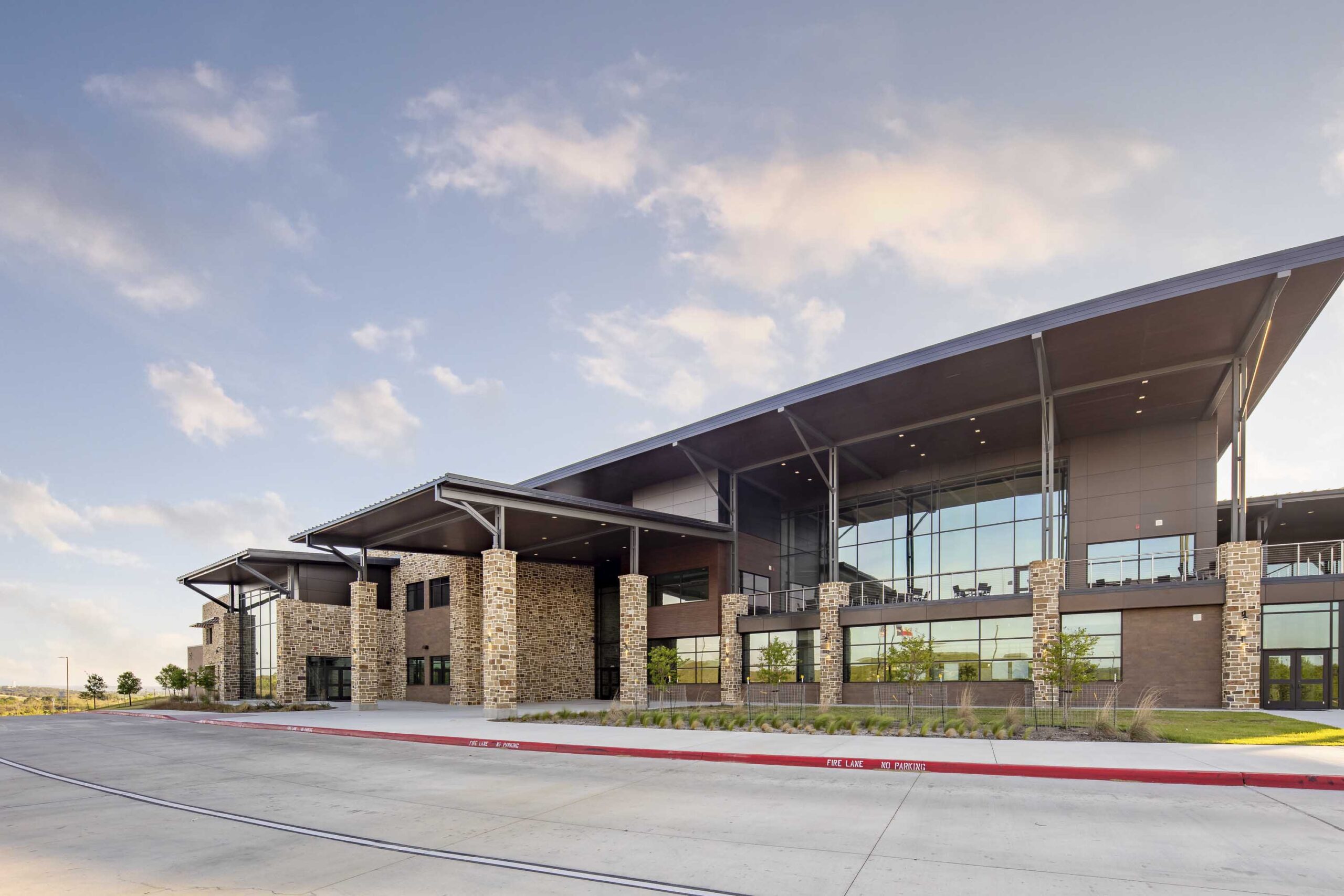 The aesthetic respects the heritage of the community and incorporates stone and masonry materials. A second-floor patio offers sweeping views of the Texas Hill Country and serves as a gathering space for learning, events and as an art lab.