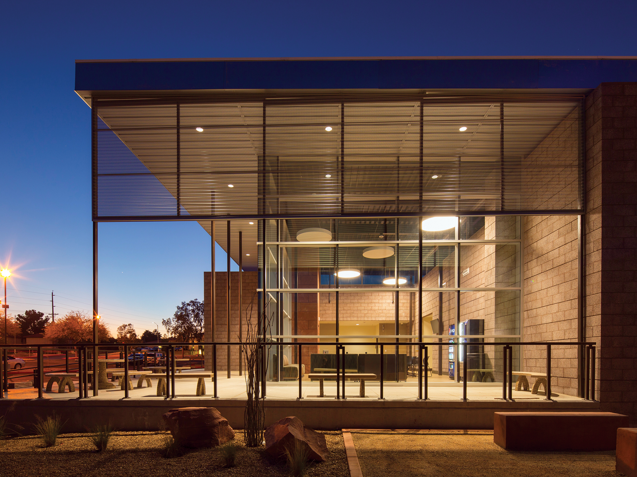 In 2012, the College of Southern Nevada selected TSK to renovate and design an addition to the oldest building on its campus on West Charleston Boulevard. The original building had been renovated and added onto four times previously and had a mixed material palette and disparate design elements. The building renovation was to occur in the center of the building while the east and west wings of the building were to remain occupied and functional during construction.
