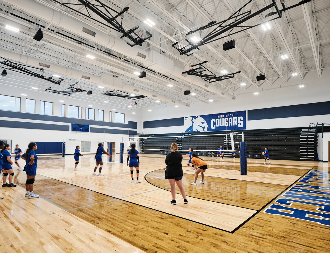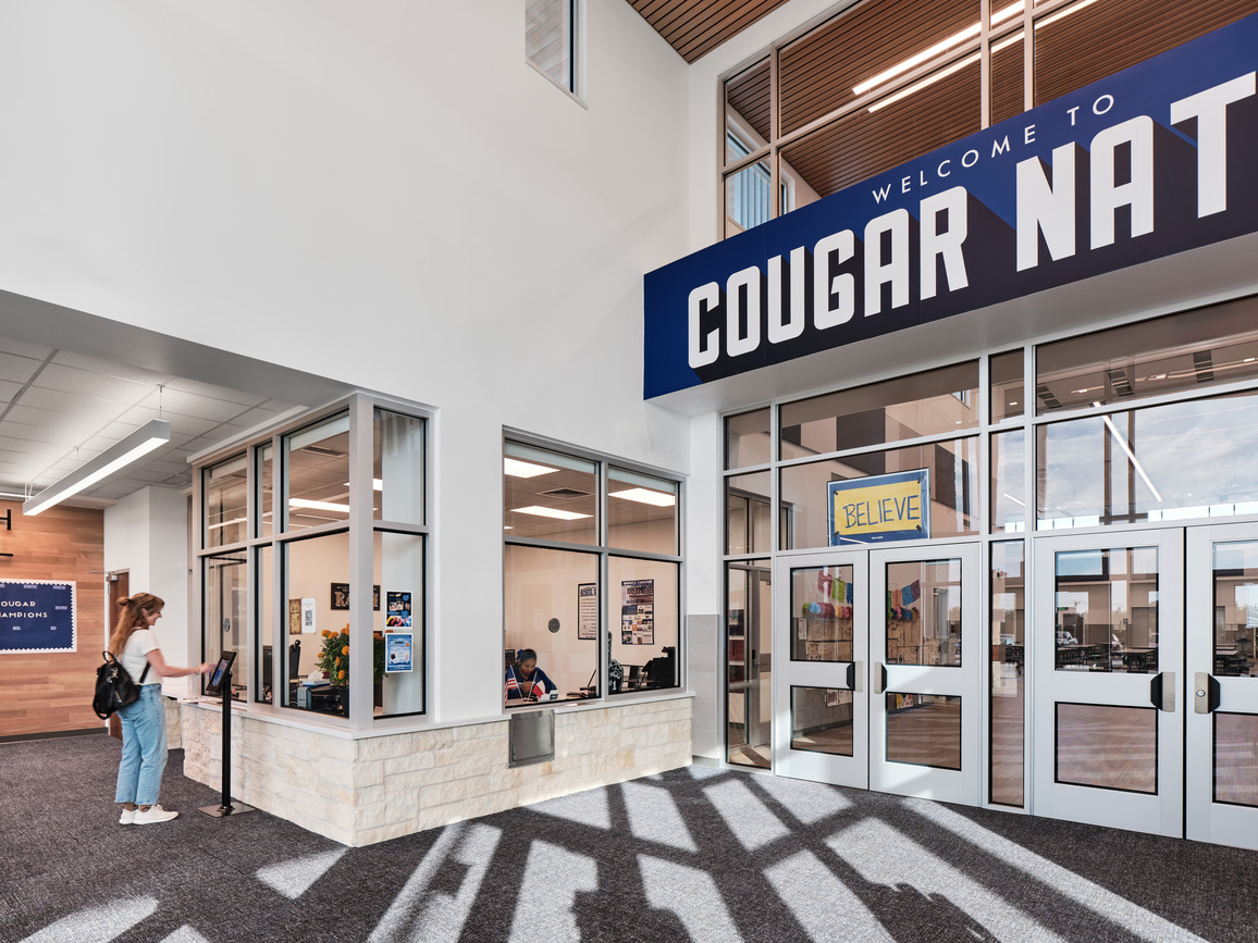 The goal for design was to create a user-friendly configuration that met academic needs within the building and on the site. Public and visitor utilization was an important factor in the arrangement of the campus and fine arts and athletics are located near the entry on the public facing side of the school. Learning environments are located on a more private, secure portion of the site.