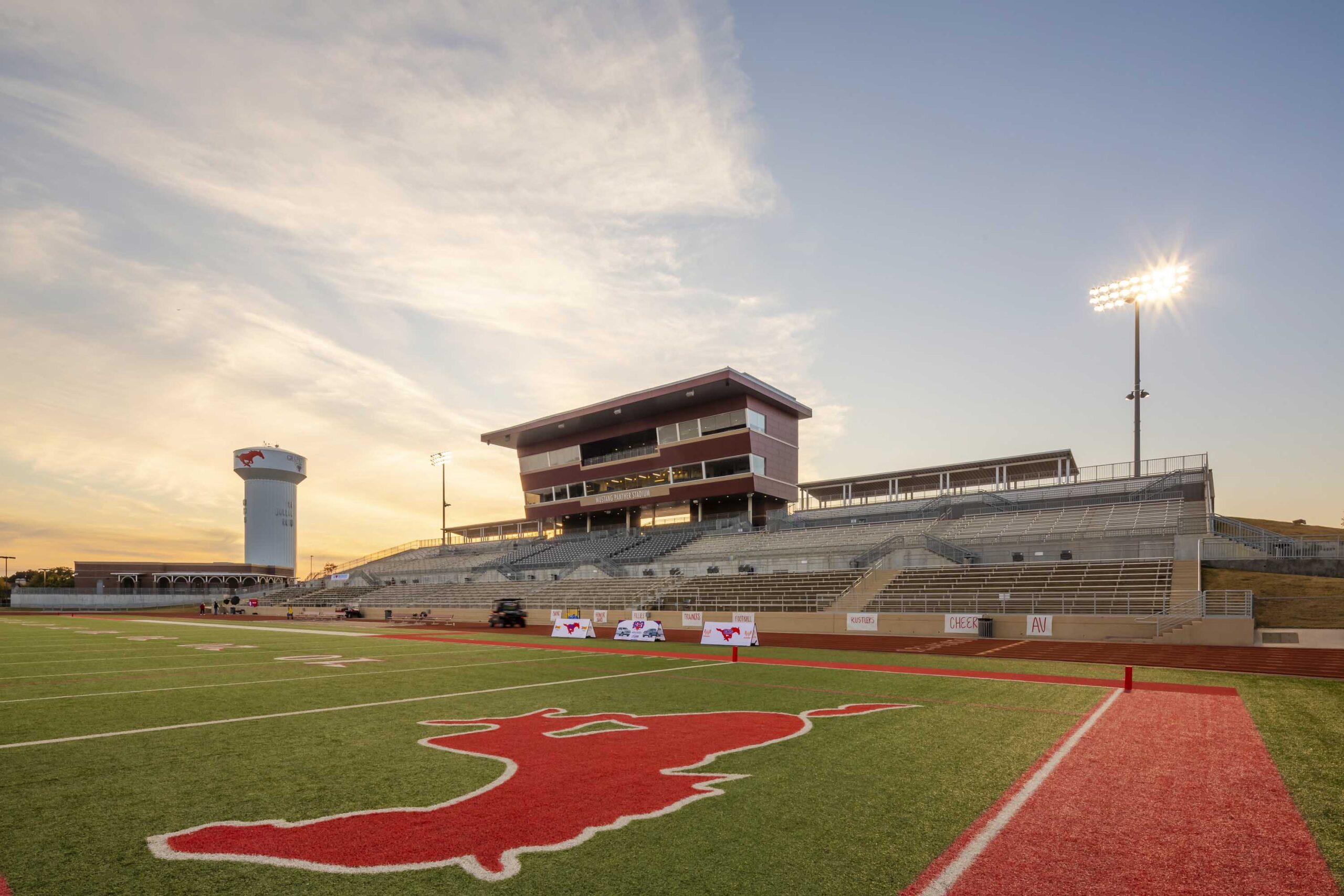 The Mustang-Panther Stadium additions and renovations will revitalize Grapevine-Colleyville ISD’s athletic complex and feature an aesthetic designed to match nearby historical Main Street. The stadium is capable of accommodating over 9,000 people. Amenities include new concession stands, restrooms and spirit shop. An upgraded scoreboard, ADA and security features enhance the game-day experience. A new home-side press box and new athletic offices add utility to the overall design.
