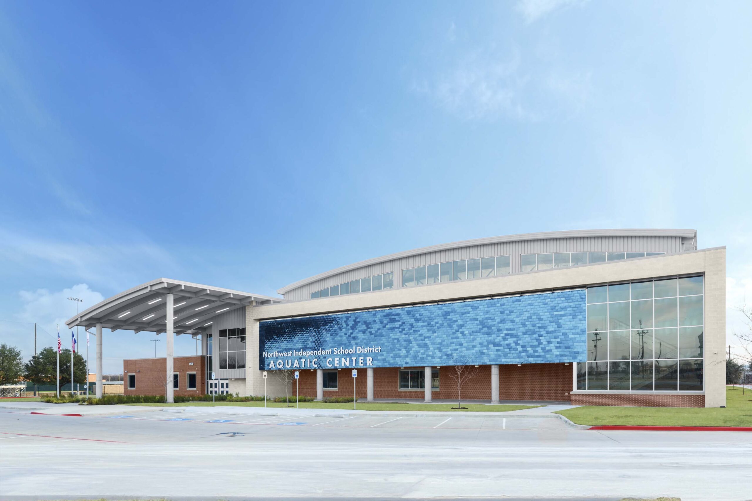 This new facility, located in Justin, Texas, is a one-of-a-kind multipurpose space that blends athletic training, performance and rehabilitation. The facility will offer a wide range of amenities and services to students and the local community. It features a premium pool and spectator space for swimming and diving events; sports therapy spaces; support spaces; and a first-class training area. The facility incorporates expertise from Texas Health Resources to cater to student-athletes and help them perform at their best.