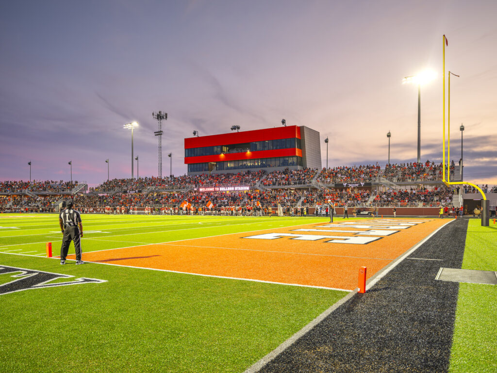 This new facility, located in Justin, Texas, is a one-of-a-kind multipurpose space that blends athletic training, performance and rehabilitation. The facility will offer a wide range of amenities and services to students and the local community. It features a premium pool and spectator space for swimming and diving events; sports therapy spaces; support spaces; and a first-class training area. The facility incorporates expertise from Texas Health Resources to cater to student-athletes and help them perform at their best.
