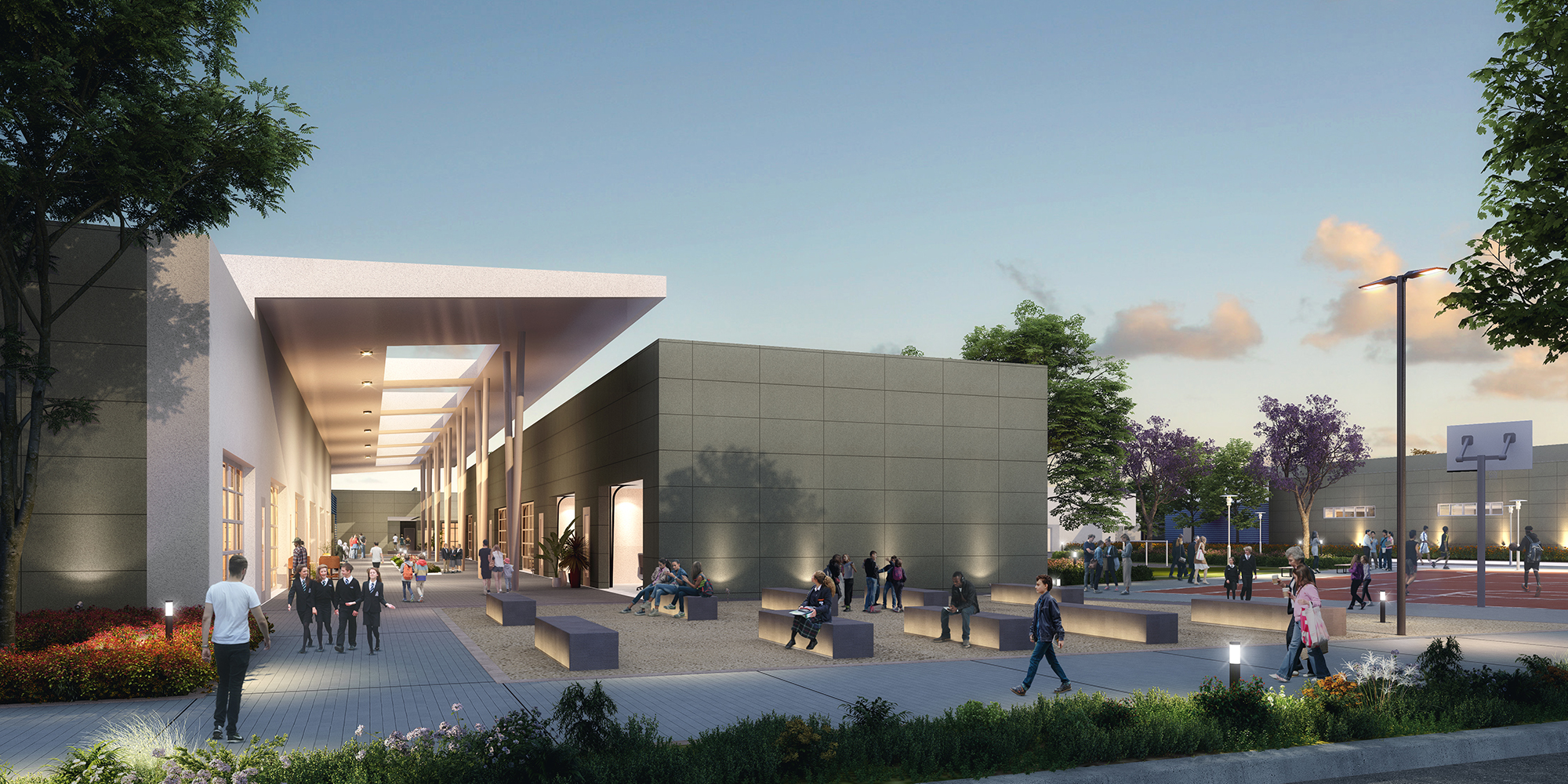 At full build-out, the school will serve up to 1,500 students, Kindergarten to 12th grade, making it the first charter school of its kind in the region, with a secondary program that includes courses in Spanish, Mandarin, American Sign Language and coding. The new campus has seven single-story buildings and a two-story building clustered around three quads with a total of 60 classrooms, library, and administrative offices. There is also an indoor gym, outdoor basketball courts and playgrounds. An athletic field is planned for the west side of the property. The new campus has a college feel, featuring a multipurpose room and a media center where students can connect directly with NASA missions and science labs.