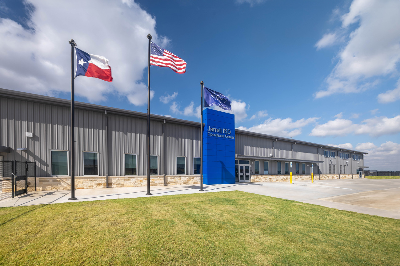 The new Operations Center for Jarrell ISD provides a new home for administrative offices, fueling and maintenance stations for 65+ district buses, and a 7,500 square foot warehouse to support growing operational needs.
