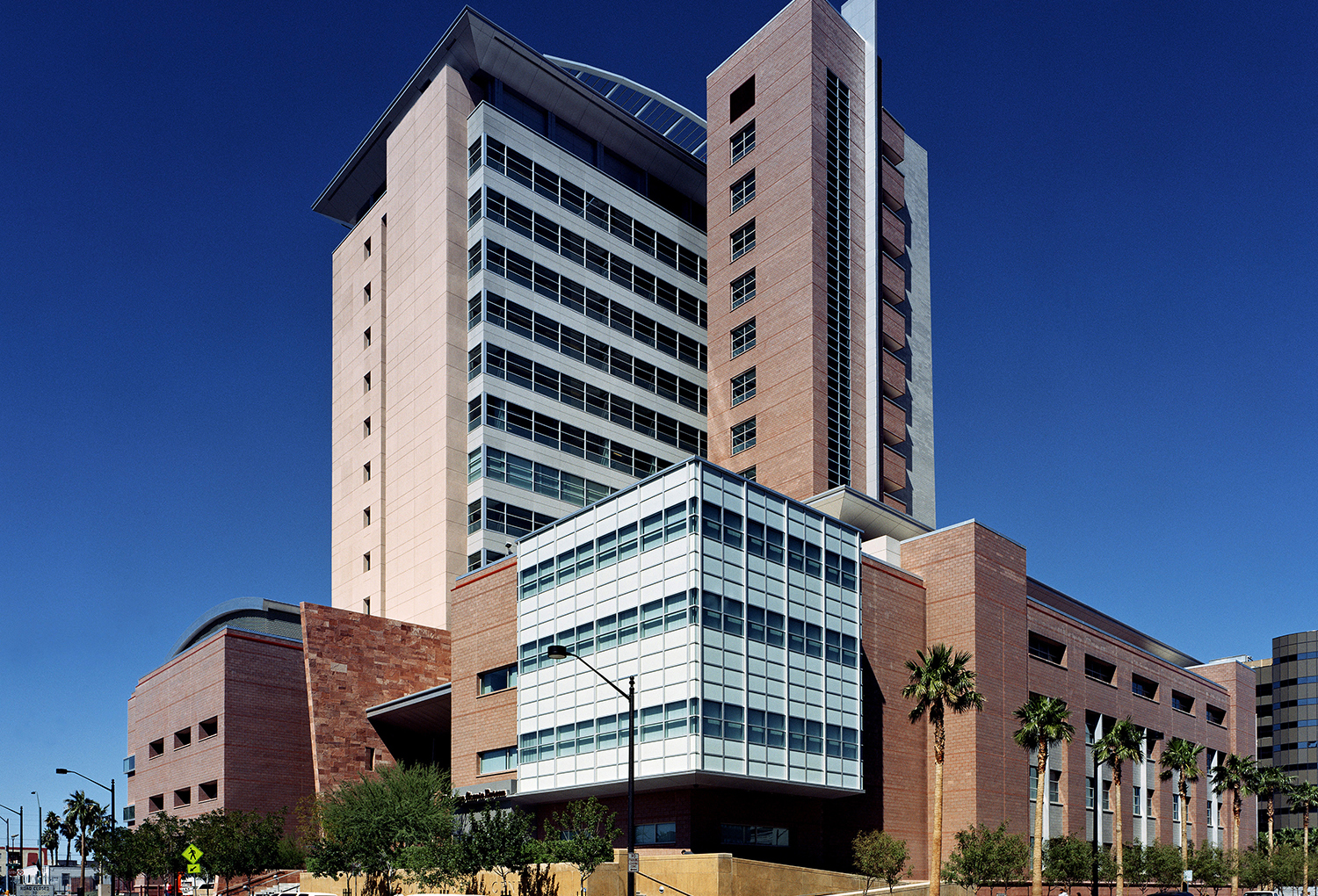 The Clark County Regional Justice Center collocates four court systems within a single facility. The 19-story, 710,000 square foot complex houses district, justice, municipal and state supreme courts.
