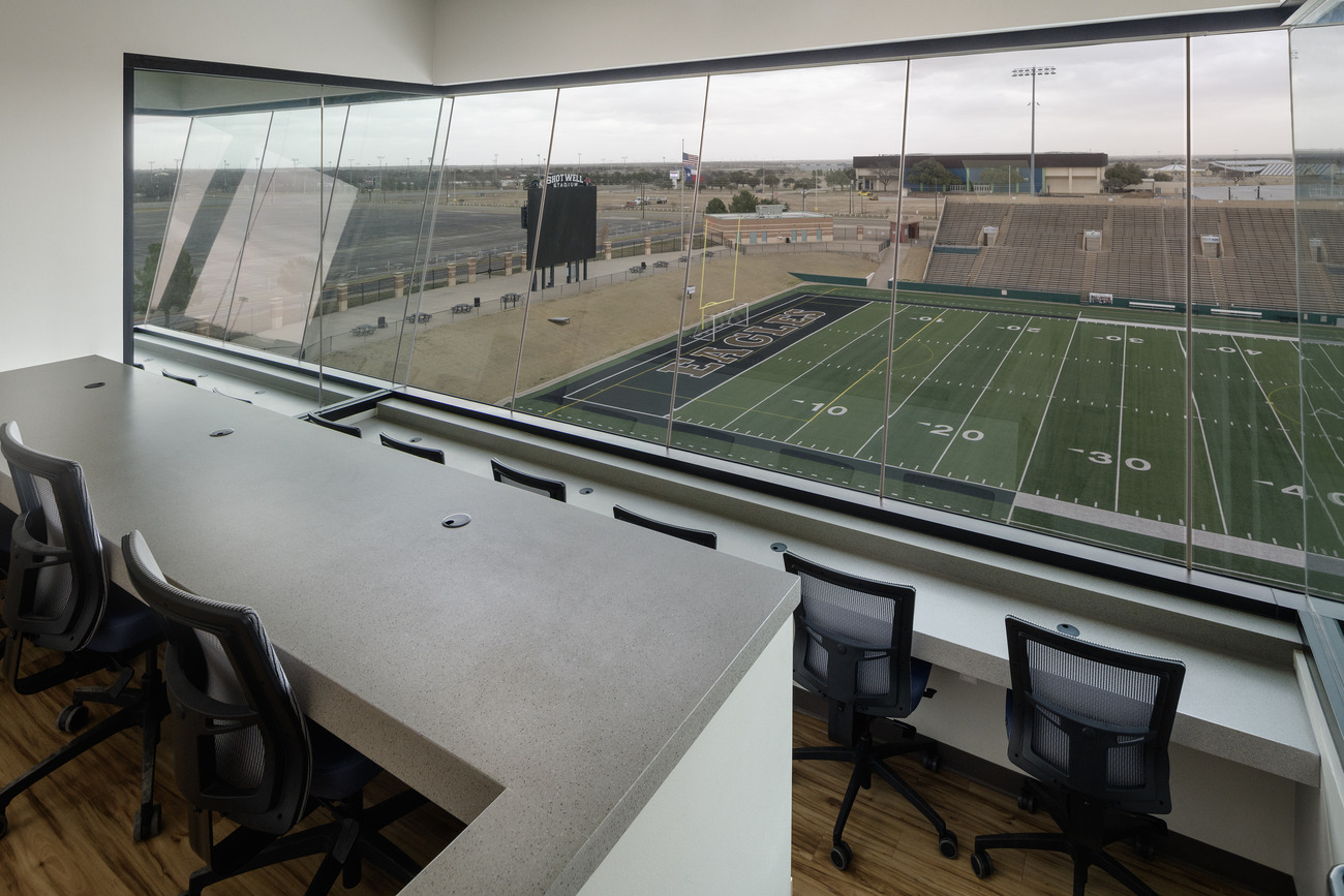 Huckabee designed a 12,600 square foot replacement of the district’s 1960s era press box, creating a more functional, aesthetic, and comfortable space for district events.
