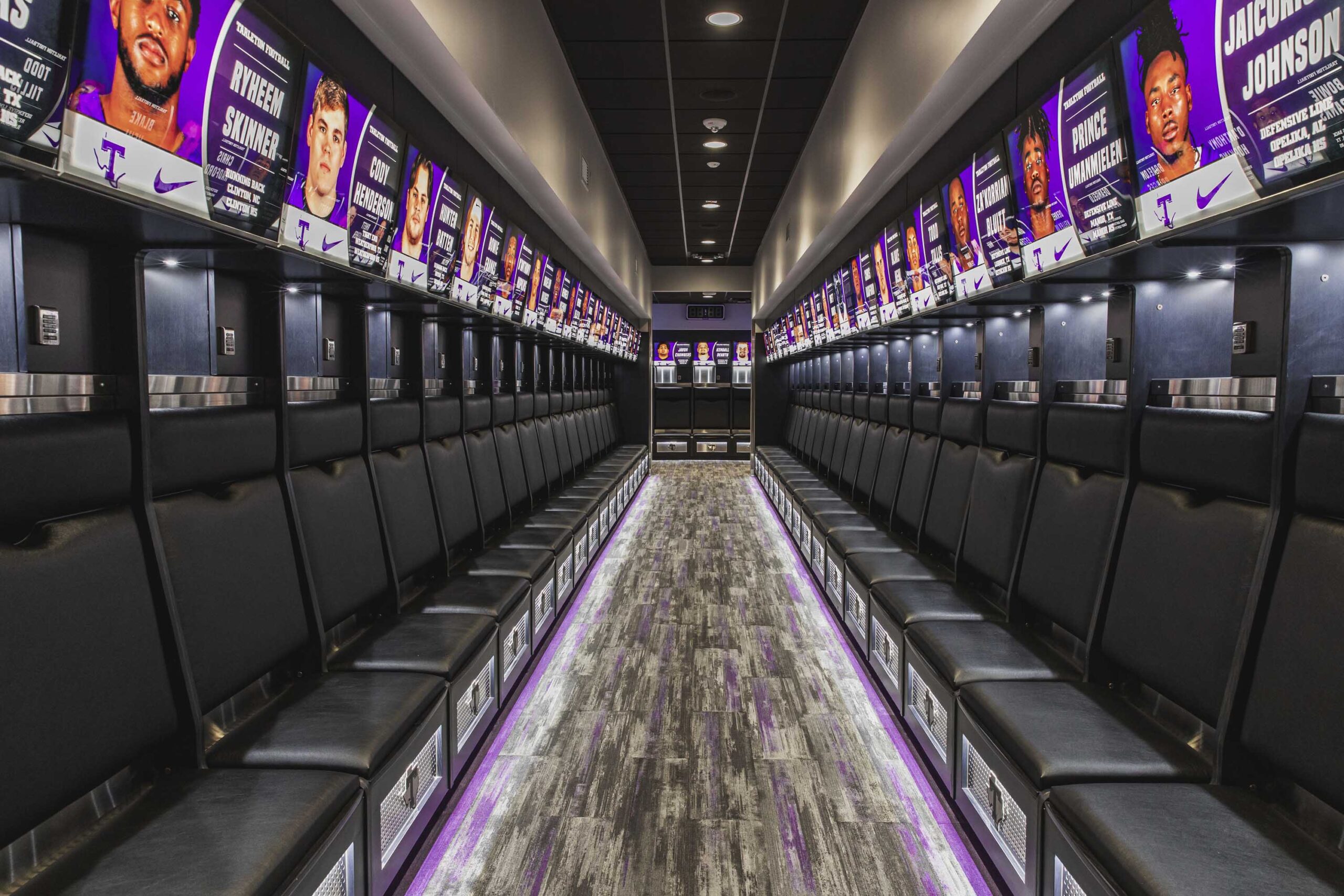 Tarleton State University’s football fieldhouse was fully renovated to create a first-class facility and experience for student-athletes and staff. The Huckabee team expanded the fieldhouse to 16,000 square feet and added lockers, restrooms, a player lounge with gaming stations, sports medicine suite with a Hydro Room, equipment storage and administrative space for coaches. Future additions will expand the film room and create more multipurpose space.
